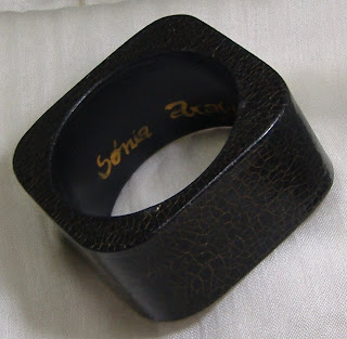 Descrição: pulseira de madeira pintada na cor preta, com craquelado dourado (técnica que dá um aspecto estalado à tinta - tipo as louças das nossas avós)