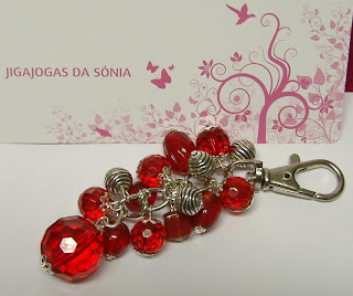Descrição: Estrutura de metalizada, contas acrílicas de cor vermelha e bolas de metal