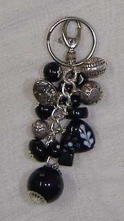 Descrição: Estrutura metalizada com pendente coração de metal, contas de vidro de cor preta, conta de vidro fancy