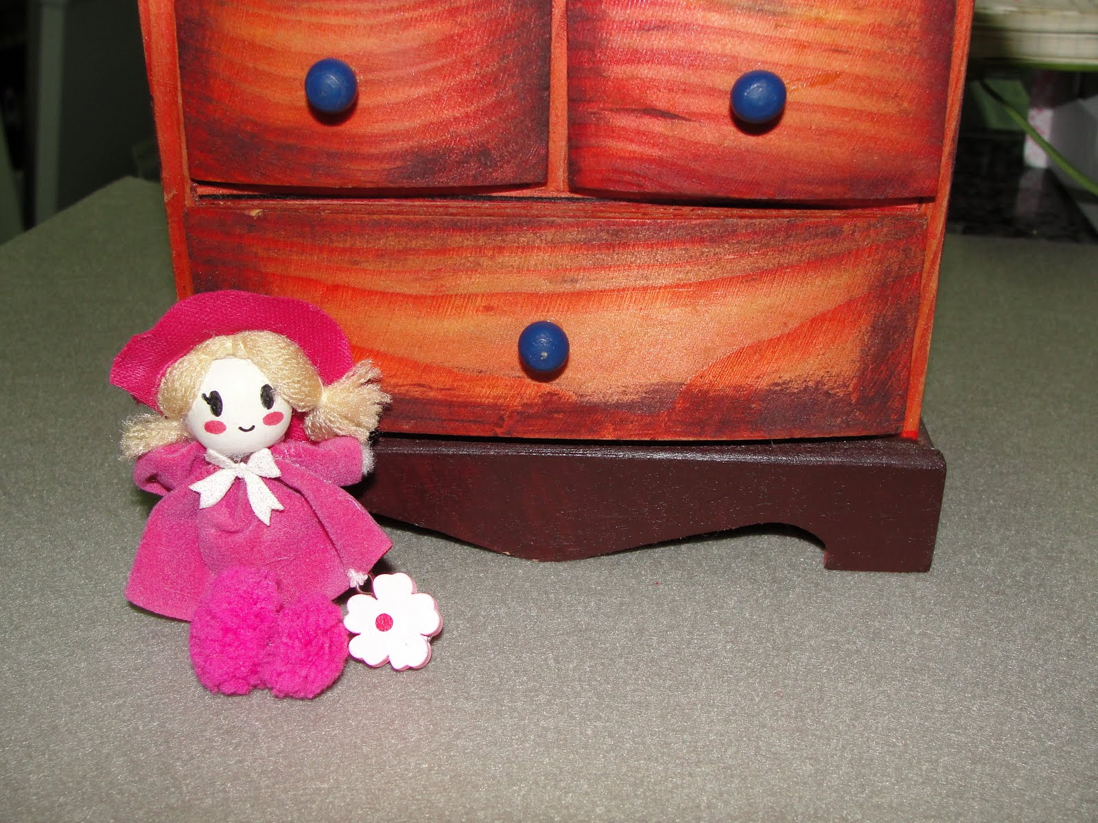 Descrição: bonequinha feita de tecido de veludo de cor rosa fuchsia com alfinete para aplicar em qualquer tecido mole.