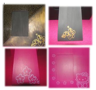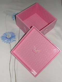 Descrição: caixa de madeira pintada à mão, aplicação da técnica das bolinhas no lateral exterior da tampa e em todo o interior (aspecto de tecido às bolinhas); aplicação de peças em madeira alusivas à infância(ursinho, cavalinho, fralda e biberão)em tons rosa.