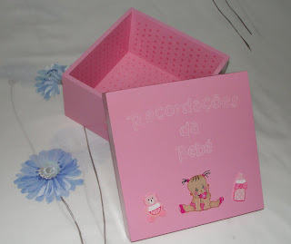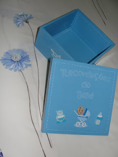 Apresento 2 criações feitas para a Feira de Artesanato Urbano que decorreu no fim-de-semana passado. Estas caixas servem para oferecer simples ou recheadas com miminhos para os bebés (uma fraldinha pintada, um brinquedo, uma pecinha de roupa e outras utilidades para os piquinotes). Estas caixas servem para guardar as recordações do bebé como: pulseirinha da maternidade, 1ª chupeta, o caracolito, pequenas lembranças recebidas, os dentinhos quando cairem, e outros pedaços de história que recordem o bebé. A caixinha do menino já não voltou a casa. Foi adquirida por um casal com muito bom gosto, para oferecer...Espero que quem a recebeu, tenha gostado.