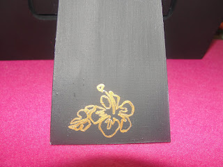 Pormenor da parte de trás da moldura com pequena flor pintada em dourado igual à frente da moldura.