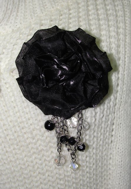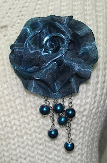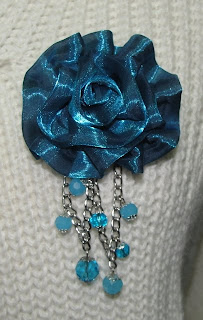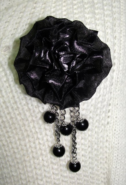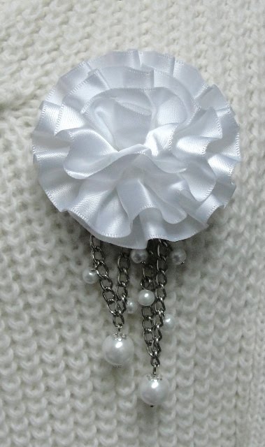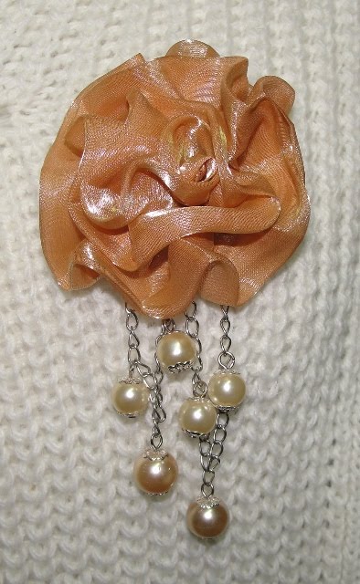Descrição: alfinetes com flor organza de cor castanha clara com pérolas acrílicas de cor champanhe.